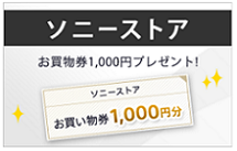 ![]() | ソニーストアで1万円以上のお買い物に利用できる 1,000円分のお買い物券をプレゼント。 | ゴールド以上のSo-net会員 ※ナローバンドコースおよび法人コースは対象外(So-net メンバーズコースは対象) | |